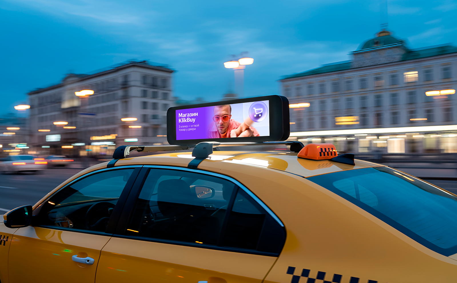 Наружная реклама Яндекса направлена на трансляцию рекламы офлайн с помощью цифровых витрин и коробок на крышах такси. Желающие смогут разместить рекламные ролики длительностью около 10 секунд. При желании можно выбрать один или несколько форматов для показов.