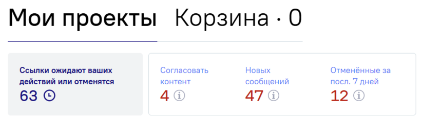 При этом на странице «Мои проекты» появится новое уведомление – «Согласовать контент», чтобы вы не пропустили тексты, ожидающие проверки: