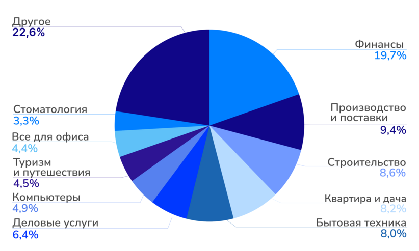 Максимальные бюджеты на линкбилдинг концентрируются в финансовом секторе, нише «Производство и поставки», строительстве, тематике «Квартира и дача», а также в сегменте бытовой техники: