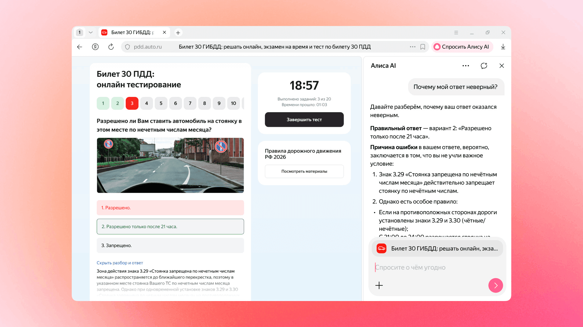 Функция полезна при работе с картинками и текстами, которые нельзя выделить или скопировать. В таких случаях пользователь может задать вопрос в чате, а нейросеть сама разберет содержание страницы и даст пояснение. Это может пригодиться при решении задач или изучении учебных материалов: ассистент способен объяснить тему, разобрать условие и предложить похожие примеры для тренировки.