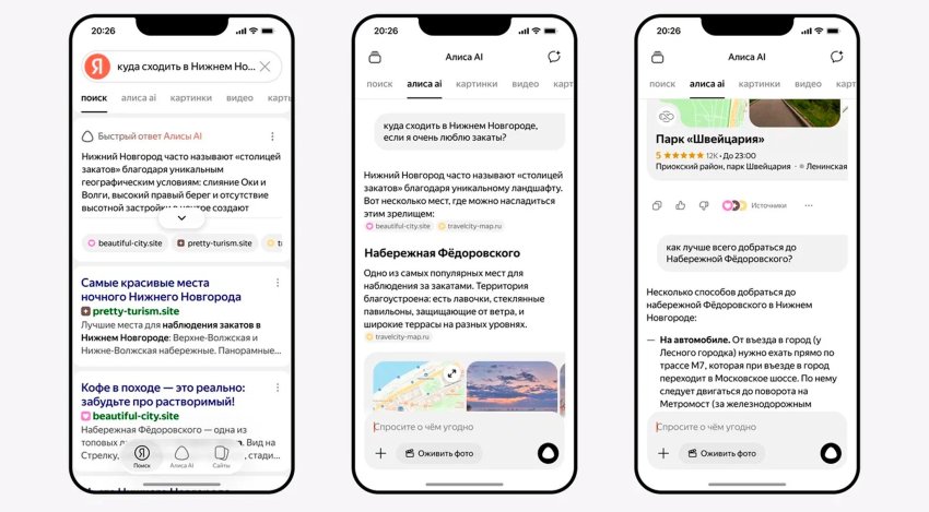 Яндекс рассказал о нескольких обновлениях Поиска. В первую очередь, была внедрена технология «ИИ-блендер», которая оптимизирует комбинацию блоков под каждый запрос. Также разработчики добавили возможность переключения между поисковыми ответами и диалогом с Алисой AI.