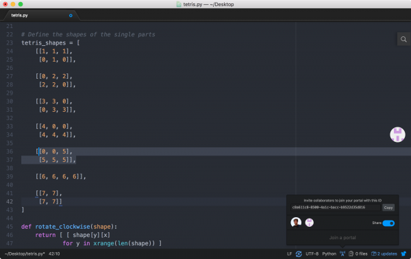 Кросс-платформенный редактор для кода Atom, созданный в GitHub на основе движка Chromium, успел полюбиться многим. Одна из его главных фишек — это плагины. Именно ей и воспользовались разработчики, чтобы добавить в Atom новую экспериментальную фичу — одновременное редактирование кода сразу несколькими пользователями. Новый плагин называется Teletype. Установить его можно, написав в консоли apm install teletype либо из настроек Atom — поищи по слову teletype в разделе Install. После установки в нижней панели появится значок с радиовышкой. Жми на нее и логинься через GitHub. Чтобы поделиться документом, кликай на радиовышку и копируй строчку с кодом — это ссылка на твое текущее окно редактора. Чтобы присоединиться к редактированию, выбирай пункт Join a portal и вставляй код. В коллаборативном режиме ты увидишь курсоры и выделение других пользователей — для полной копии Google Docs не хватает разве что встроенного чата. Зато в правой части окна показаны значки других пользователей — если кликнуть по одному из них, то окно перейдет к редактируемой позиции и начнет следовать за тем, что делает твой товарищ. Примечательно, что Teletype не стали встраивать прямо в Atom. Но возможно, это изменится в будущем. Источник новости - google.com