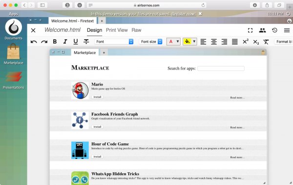 Пока что с горем пополам работают только текстовый процессор и редактор презентаций. Остальные приложения, которые можно поставить из «магазина», — это веб-версии разных сервисов, доступные без всякого Airborn.