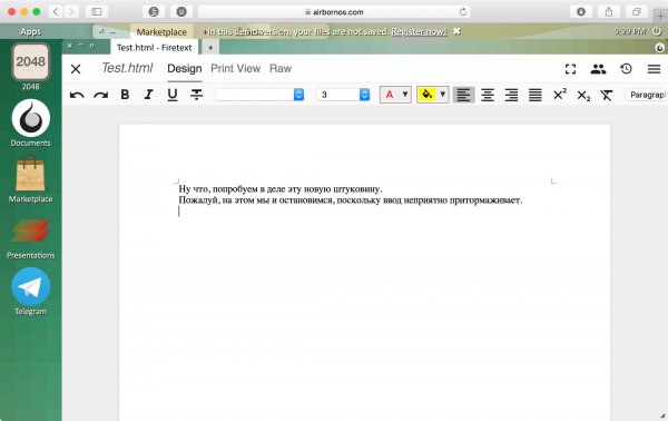 К сожалению, беглое знакомство с Airborn OS оставляет сильные, но не самые приятные впечатления. Интерфейс выглядит кривовато (и, судя по переписке на сайте Product Hunt, автор Airborn этого просто не замечает), производительность хромает, на каждом шагу наталкиваешься на глюки и ограничения вроде невозможности дать документу название на русском.