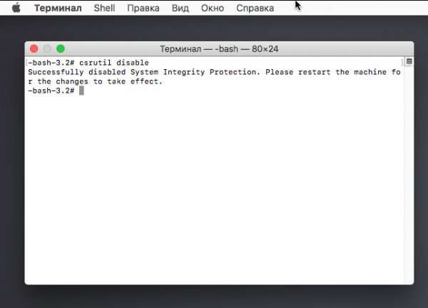 Результатом должно быть сообщение, что SIP отключен. Перезагружай машину в нормальном режиме.