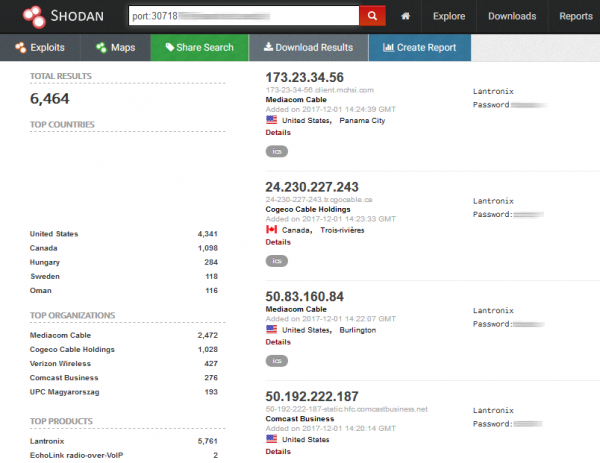 «6464 device server’ов Lantronix, которые возможно подключены к критическому оборудованию АСУ ТП, гордо выставляют свои пароли на всеобщее обозрение. Это примерно 48% всех таких устройств в Shodan», — объясняет исследователь.