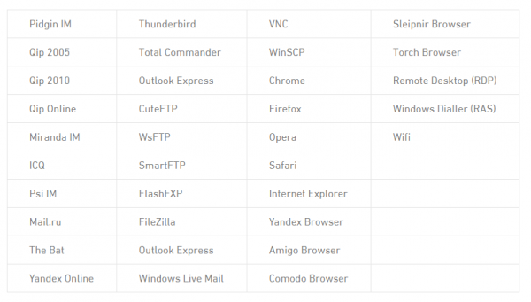 Инструмент для хищения учетных данных, Z*Stealer, ворует логины и пароли, как из приложений, так и самой ОС. Собранную информацию стилер передает через запрос HTTP POST к специальной PHP-странице на серверной стороне. В числе прочего Z*Stealer похищает учетные данные Wi-Fi сетей, Chrome, FTP клиентов, почтовых клиентов Thunderbird и Outlook Express, и так далее.