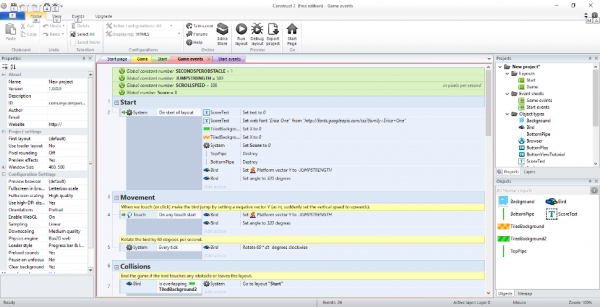 Оба продукта представляют собой конструкторы двумерных игр, не требующие умения программировать (!). В Construct 2 игру создаешь, определяя игровые события и реакцию на них. Итоговые игры портируются под все распространенные платформы. Прога идет с подробной документацией, большим количеством примеров и теймплейтов, так что освоить ее несложно. Покупать советую в Steam, там ее стоимость за персональную версию составляет 6399 рублей.
