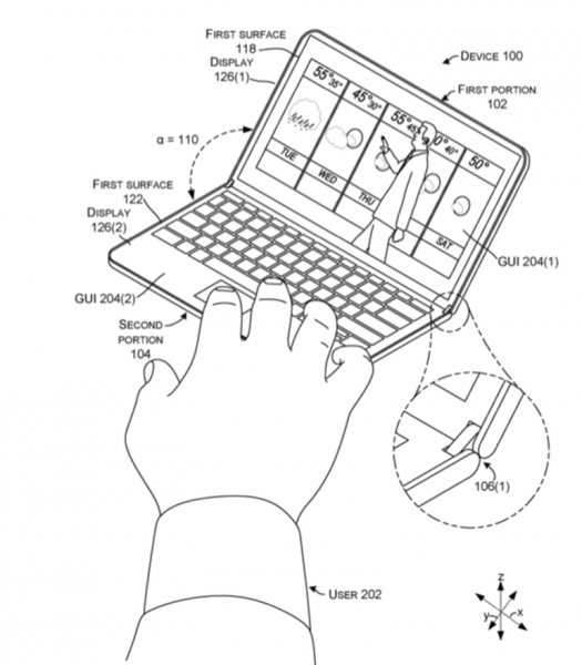 Слухи о том, что корпорация Microsoft работает над новым складным гаджетом или целой линейкой таких устройств, ходят довольно давно. Недавно же сайт MSPoweruser сообщил о том, что у Microsoft даже зарегистрирован патент, описывающий шарнир для устройства со складным дисплеем. В согнутом состоянии «Andromeda» сможет стать неким подобием ноутбука, одна часть дисплея которого будет работать в режиме экрана, тогда как вторая будет выступать в роли полноценной сенсорной клавиатуры. Если же гаджет разложить полностью и ровно, то изображение на обеих частях будет отображать единый пользовательский интерфейс.