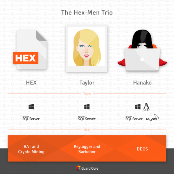 По данным GuardiCore Labs, группировка весь текущий год атакует установки MS SQL и MySQL на Windows- и Linux-системах, при этом распространяя как минимум три вредоноса с абсолютно разной функциональностью.
