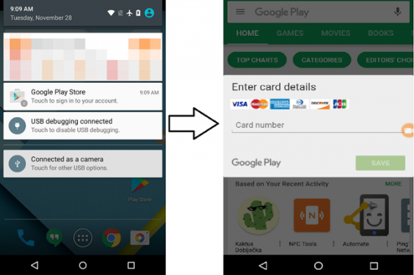 Если пользователь не заметит произошедшего и воспользуется одним из этих приложений, сработает расставленная злоумышленниками ловушка. Поверх приложения будет открыт оверлей, запрашивающий конфиденциальные данные (к примеру, информацию о банковской карте). Зачастую от такого оверлея невозможно избавиться, он ведет себя, как блокировщик и не пропадает, пока данные не будут введены.