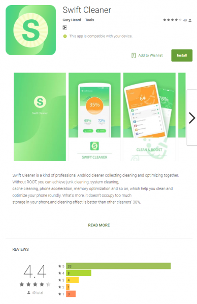 Кроме того, ANDROIDOS_BKOTKLIND.HRX способен удаленно выполнять команды своих операторов, похищать пользовательские данные, отправлять SMS-сообщения и осуществлять форвардинг URL. В настоящее время Swift Cleaner уже удален из официального каталога приложений.