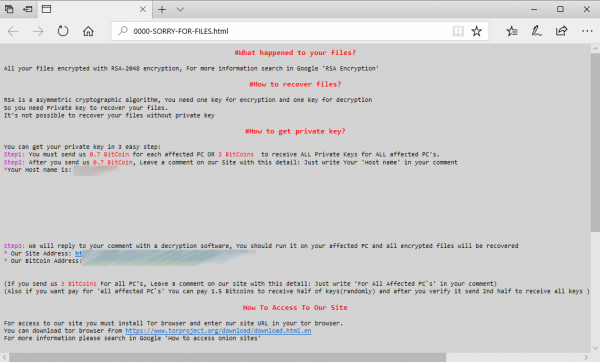 Во всех случаях данные были зашифрованы, а имена файлов или требование выкупа содержали слово «sorry». Сообщается, что теперь злоумышленники действуют не через фишинговые письма, как это было раньше, но компрометируют уязвимые или плохо настроенные публичные веб-серверы, затем используя их в качестве «точки входа» в системы организаций. К примеру, Hancock Health взломали через RDP. Данный метод еще в прошлом году описывали специалисты компании Symantec.