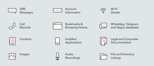 Суммарно специалисты насчитали 90 различных индикаторов компрометации (indicators of compromise), связанных с Dark Caracal, 11 из которых относятся к малвари для Android, а еще 26 к десктопным решениям для Windows, Mac и Linux. При этом сообщалось, что в основном атаки концентрировались на пользователях Android. О жертвах собирали практически всю доступную информацию, включая документы, записи голосовых звонков, текстовые сообщения, аудиозаписи, контент из защищенных мессенджеров, историю браузера, информацию о контактах и местоположении.