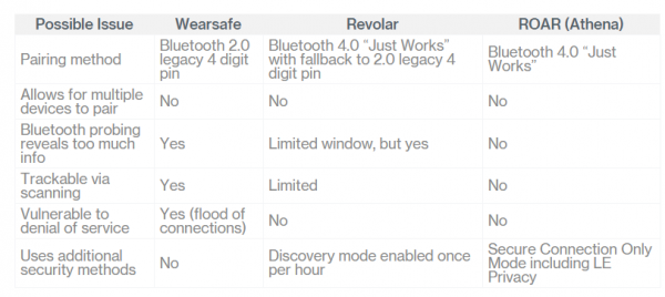 Лавлесс протестировал «тревожные кнопки» компаний Wearsafe, Revolar и ROAR. Как оказалось, все гаджеты, не считая произведенных компанией ROAR, нельзя назвать защищенными. Из-за использования Bluetooth устройства легко обнаружить даже с помощью простейших антенн и оборудования (при этом они очевидным образом определяются как индивидуальные средства защиты).