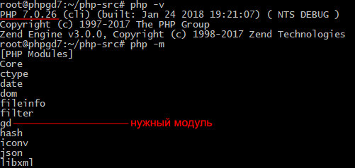 Осталось только сконфигурировать. По сути, из расширений нам нужен только gd.
