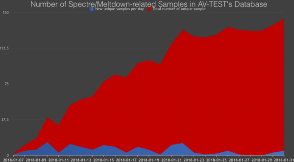 Исследователи обнаружили, что киберпреступники, похоже, уже разрабатывают вредоносные proof-of-concept для Meltdown (CVE-2017-5754) и Spectre обоих вариантов (CVE-2017-5715 и CVE-2017-5753). Так, аналитики AV-TEST сообщили об обнаружении 139 вредоносных образов, связанных с использованием «процессорных» багов. Интересно, что эти концепты ориентированы на разные платформы (Windows, Linux и macOS), а также исследователи AV-TEST подчеркнули, что среди них были jаvascript PoC-эксплоиты для различных браузеров, включая IE, Chrome и Firefox.