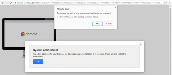 Эксперты пишут, что вредоносные расширения распространялись преимущественно через вредоносную рекламу и социальную инженерию. Так, пользователям демонстрировали фальшивое окно с запросом на установку расширения (см. иллюстрацию ниже), и если жертва соглашалась, происходило заражение.