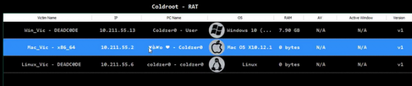 Троян удаленного доступа (remote access trojan, RAT) Coldroot известен специалистам с 2016 года. Что особенно интересно, еще тогда исходные коды вредоноса были опубликованы на GitHub. Судя по всему, исходно малварь была создана кем-то шутки ради, чтобы «поиграть с пользователями Mac» и «предоставить им права в этой [RAT] области». Но теперь троян изменился и работает для Linux, macOS и Windows, судя по билдеру, показанному в этом рекламном видео на YouTube.