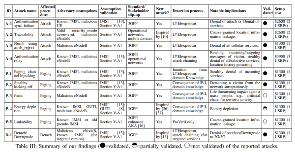 Исследователи не ограничились лишь теоретической частью, и провели испытания, эксплуатировав восемь из десяти уязвимостей на практике в сетях операторов AT&T, Verizon, T-Mobile и Sprint. Специалисты подчеркивают, что для тестового стенда они использовали только ПО и оборудование, доступное в свободной продаже. То есть злоумышленники могут проделать то же самое, потратив на оборудование около 1300-3900 долларов США.