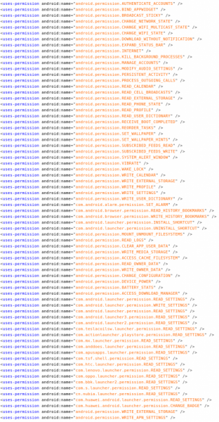 Заметить зараженное RottenSys приложение не так уж трудно. На иллюстрации приведен список запрашиваемых малварью разрешений