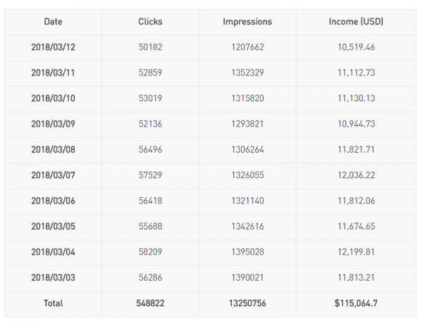 Аналитики пишут, что в текущем состоянии RottenSys приносит злоумышленникам неплохой доход: преступники зарабатывают на навязчивой рекламе порядка 115 000 долларов каждые 10 дней. Только за последние 10 дней малварь показала пользователям 13 250 756 рекламных объявлений, что обратилось в 548 822 клика.
