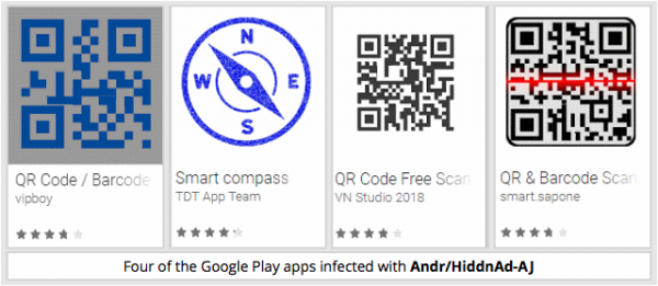 Эксперты компании Sophos рассказали об обнаружении в официальном каталоге Google Play семи приложений, внутри которых скрывалась адварь HiddnAd (Andr/HiddnAd-AJ). Рекламные вредоносы прятались в разных приложениях, включая шесть сканеров QR-кодов и «умный» компас. В Google Play малварь, как обычно, проникла благодаря отложенной вредоносной функциональности приложений (странное поведение началось далеко не сразу же после установки) и разумному подходу к кодингу, который продемонстрировали злоумышленники.