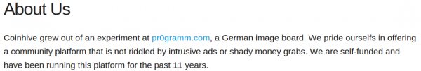 Ранее информация о связи Pr0gramm и Coinhive была открыто опубликована на официальном сайте Coinhive