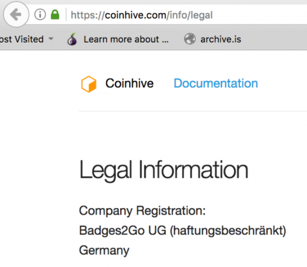 Ранее информация о связи Pr0gramm и Coinhive была открыто опубликована на официальном сайте Coinhive (см. иллюстрацию ниже). Нынешние владельцы Coinhive полностью подтвердили эту информацию Кребсу и объяснили, что использовать имя Pr0gramm более нет нужды, так как сейчас проект стал полностью самостоятельным, хотя на первых порах администрация имиджборда действительно помогала Coinhive инфраструктурой и не только.