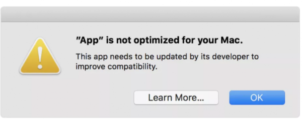 Начиная с сегодняшнего дня, 12 апреля 2018 года, пользователи macOS (High Sierra 10.13.4) начали получать предупреждения о несовместимости 32-битных приложений. При запуске некоторых приложений теперь можно увидеть сообщение: «Это приложение должно быть обновлено разработчиками для улучшения совместимости». В сообщении также содержится ссылка на официальную страницу поддержки с дополнительной информацией.