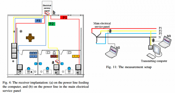 электрораспределительный щит на нужном этаже или в нужном здании. Разумеется, такой способ более незаметен, однако скорость передачи информации вряд ли превысит 10 бит/сек из-за многочисленных «помех». Второй метод, по мнению исследователей, тем не менее, подойдет для хищения паролей, токенов, ключей шифрования и других данных небольшого объема.