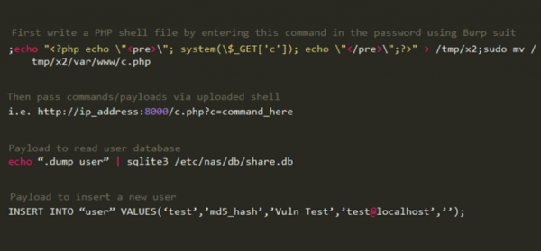 На приведенном ниже видео специалисты демонстрируют эксплуатацию проблемы и показывают, что злоумышленники могут прибегнуть к помощи персистентного shell’а. Так выполнить команды будет даже проще, и преступники смогут, например, скачать БД устройства, включая имена пользователей, их email и хеши паролей (MD5). Так как назвать MD5 надежной защитой нельзя, атакующие могут взломать похищенные пароли и получить уже авторизованный доступ к устройству, что позволит им похитить любую информацию, хранящуюся на NAS.