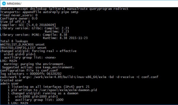 $ docker run -it --rm --name exim -p 25:25 --cap-add=SYS_PTRACE --security-opt seccomp=unconfined skysider/vulndocker:cve-2018-6789