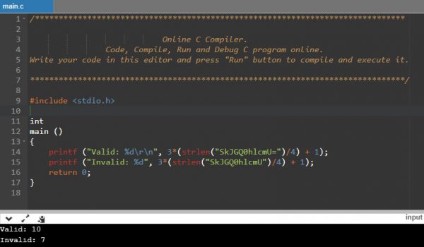 Размеры выделяемой памяти для валидной и невалидной строки Base64