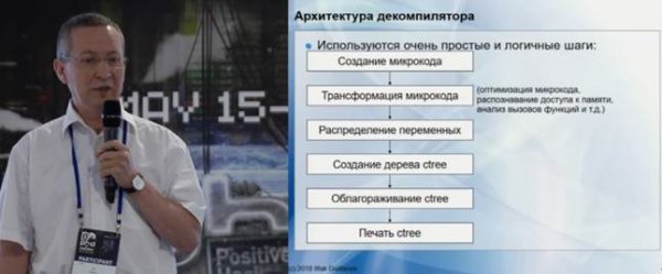 Один из ключевых докладов форума — «Внутренний язык декомпилятора Hex-Rays: микрокод» автора дизассемблера IDA Pro и декомпилятора Hex-Rays Ильфака Гильфанова. Он рассказал об истории возникновения языка и его технических особенностях, а также о проблемах, возникающих при декомпилировании программ.