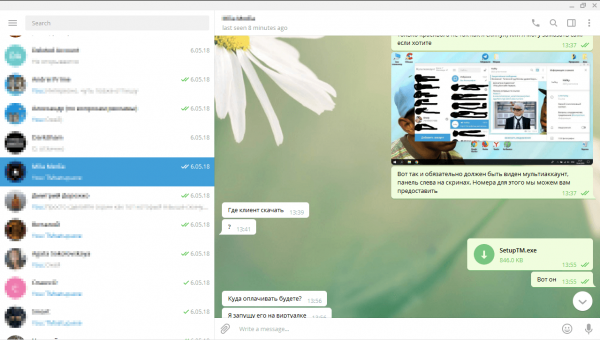 Кроме того, для распространения новых модификаций малвари, купившие его у вирусописателя злоумышленники придумали еще один, более оригинальный метод. Так, преступники связывались с администраторами тематических Telegram-каналов и предлагали им написать пост, посвященный якобы разработанной ими новой программе, и предлагали ее протестировать. Якобы программа позволяла одновременно подключаться к нескольким аккаунтам Telegram на одном компьютере. На самом деле под видом полезного приложения они предлагали потенциальной жертвам загрузить спайварь.
