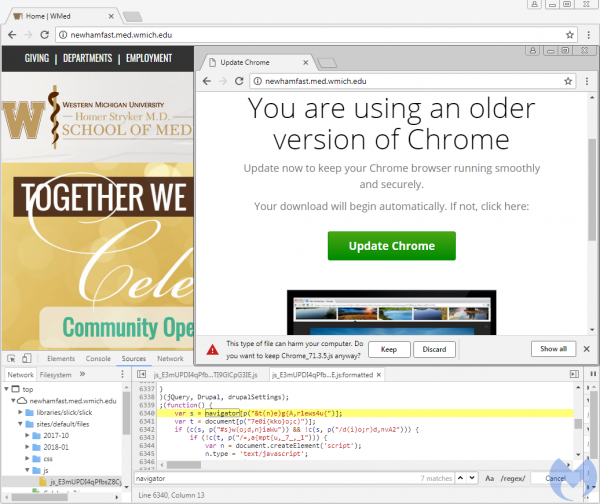 В 12% случаев взломанные сайты распространяют RAT-угрозы и ПО для кражи паролей. Чаще всего такая малварь замаскирована под обновления для браузеров.