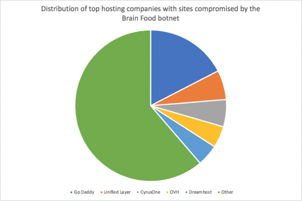 Исследователи рассказывают, что операторы Brain Food компрометируют сайты, работающие под управлением различных CMS, включая WordPress и Joomla. При этом эксперты не считают, что злоумышленники эксплуатируют какие-то конкретные уязвимости в системах управления контентом.