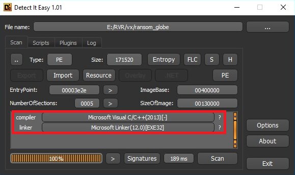 Нераспакованный образец GlobeImposter в pestudio