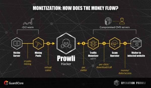 По данным GuardiCore, ранее для управления трафиком операторы ботнета использовали систему EITest, также известную как ROI777. Деятельность данного сервиса был остановлена ИБ-специалистами в апреле текущего года, однако незадолго до этого, еще в марте 2018 года, ROI777 был взломан, и дампы попали в открытый доступ. Судя по всему, все это никак не повлияло на операции Prowli, и ботнет продолжил работу как ни в чем не бывало.