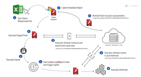 Для эксплуатации бага злоумышленники используют вредоносные файлы Office. После открытия такие документы подгружают вредоносный файл SWF с удаленного сервера и выполняют его непосредственно внутри документа. SWF эксплуатирует проблему CVE-2018-5002, что позволяет атакующим выполнить на машине жертвы произвольный код и заразить систему какой-либо малварью. В сущности, эксплуатация проблемы не требует практически никакого взаимодействия с пользователем, не считая необходимости открыть сам документ.