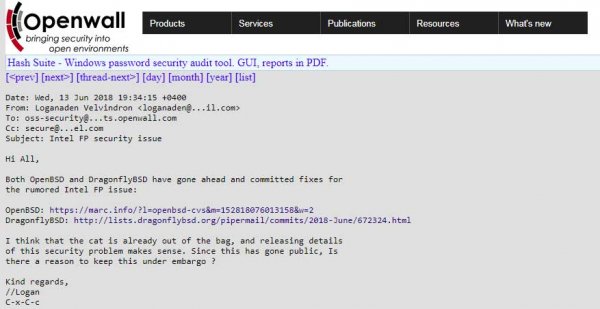 В процессорах Intel выявлена еще одна уязвимость, подобная Meltdown и Spectre. Проблема получила идентификатор CVE-2018-3665 и название Lazy FP state restore.