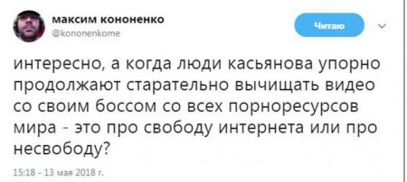 А на вчерашнем так называемом митинге отдувался Касьянов, которому, само собой, припомнили его сексуальную видео-историю, когда его сподвижники потом активно удаляли. У людей возник нормальный вопрос: это как, «про свободу или про несвободу» интернета?