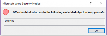 Таким образом, если пользователь попытается открыть вредоносный документ, содержащий опасный объект OLE, тот будет заблокирован, а пользователь увидит лишь вот такое сообщение об ошибке.