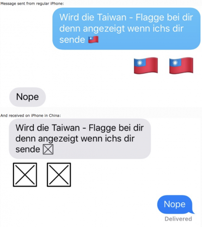 Анализируя баг, эксперт пришел к выводу, что корень проблемы лежит в том, что iOS должна вымарывать изображение тайваньского флаг из переписки китайских пользователей. Дело в том, что КНР не признает государственный суверенитет Тайваня. Если у пользователя iOS в качестве страны установлен Китай, флага Тайваня вообще не будет даже в списке эмодзи.