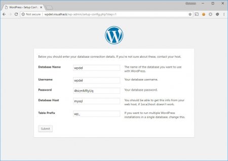 Теперь устанавливаем WordPress, используем наш MySQL-сервер в качестве БД.
