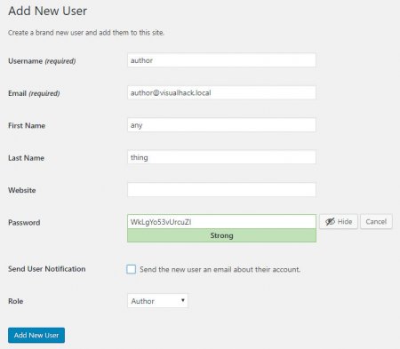 Создание пользователя с привилегиями добавления медиафайлов в WordPress 4.9.6