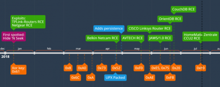 В начале июле эксперты Qihoo 360 представили обновленный отчет о деятельности HNS. Выяснилось, что ботнет уже нельзя считать чистой IoT-угрозой, так как вредонос научился атаковать уязвимые БД-решения, помимо роутеров и DVR. Так, малварь представляет угрозу для OrientDB и CouchDB, устройств AVTECH, Cisco Linksys, TP-Link и Netgear.